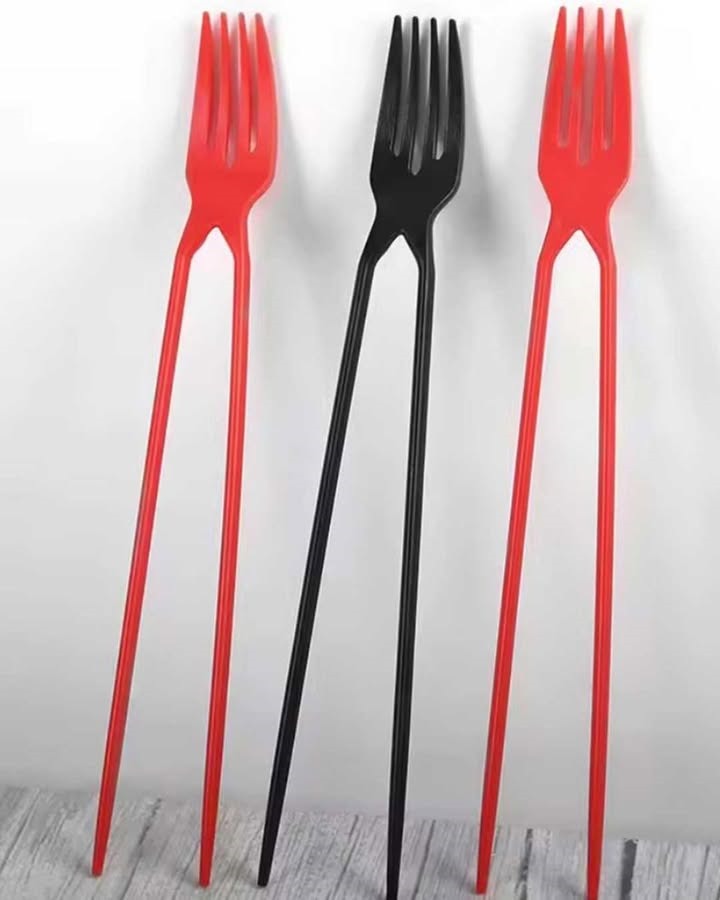 Training chopsticks were first developed in East Asia to help beginners (especially children) learn proper technique. They often include loops or connectors for finger placement. The chopstick-fork combo is a modern evolution of this idea, offering a fun yet practical way to transition toward traditional chopsticks.