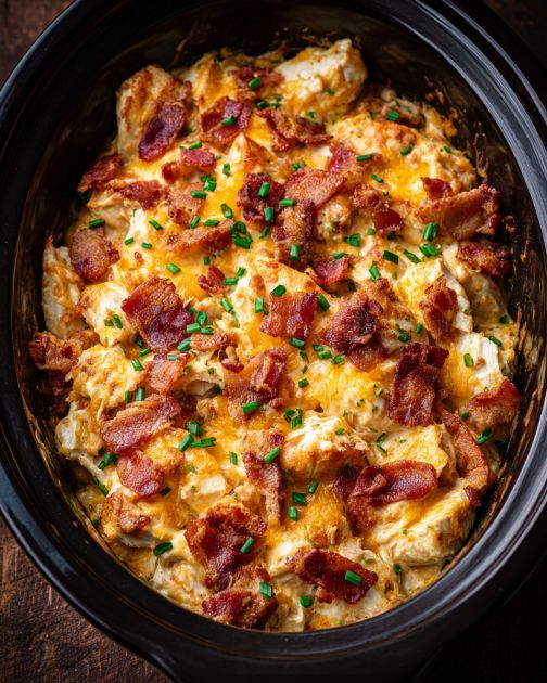 The slow cooker cheesy bacon ranch chicken casserole is a comforting dish that brings together the savory flavors of crispy bacon, tender chicken, and rich cheese, all seasoned with the beloved ranch dressing. This dish has its roots in American cuisine, particularly in regions where hearty, one-pot meals are cherished. It’s perfect for busy families or anyone looking for a delicious, hassle-free meal that can be prepared ahead of time. The slow cooking process ensures that all the flavors meld together beautifully, resulting in a dish that’s both satisfying and bursting with flavor.