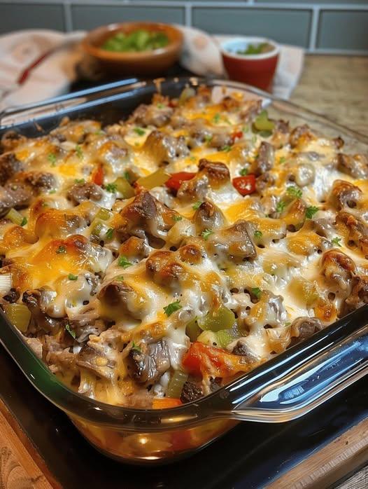 There’s something undeniably comforting about transforming a beloved sandwich into a bubbling, oven-baked masterpiece. This Philly Cheesesteak  Casserole takes everything you love—savory  beef, sautéed peppers and onions,  creamy richness, and melty cheese—and wraps it into a warm, satisfying dish that fills your kitchen with irresistible aroma.