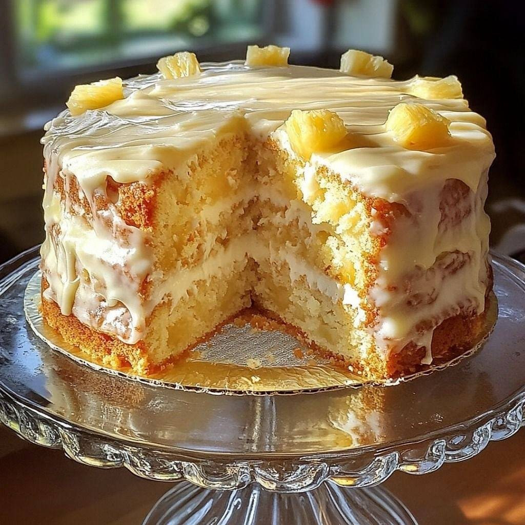 A tropical, buttery cake with crushed pineapple and a citrus glaze—perfect for any occasion.
