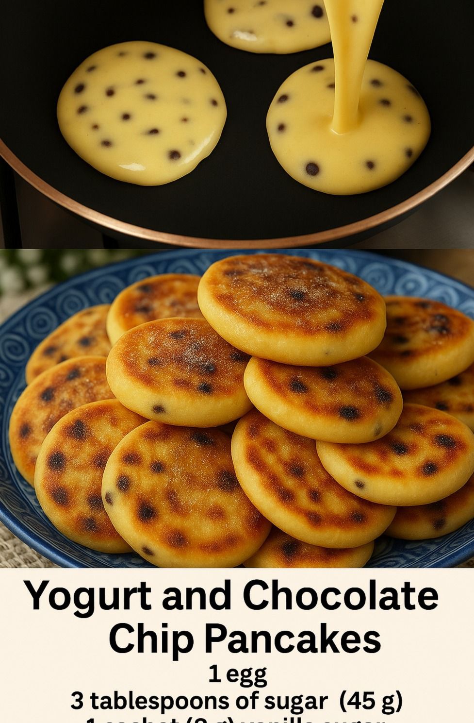 These soft, golden pancakes with melty chocolate chips are cooked on a pan — no oven needed! Made with yogurt, they’re extra moist and light. Perfect for breakfast, snacks, or sweet cravings!